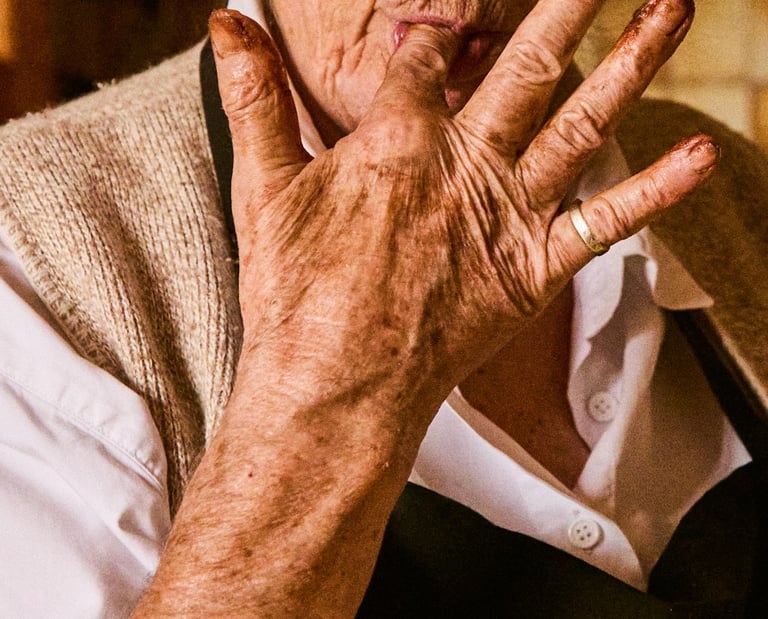 Au-delà de simples portraits, ces photographies cherchent à capturer l'essence de nos aïeux, la quiétude et la tendresse de leurs gestes, et les histoires non dites qu'ils portent en eux, celle qu'on lit dans leurs yeux.